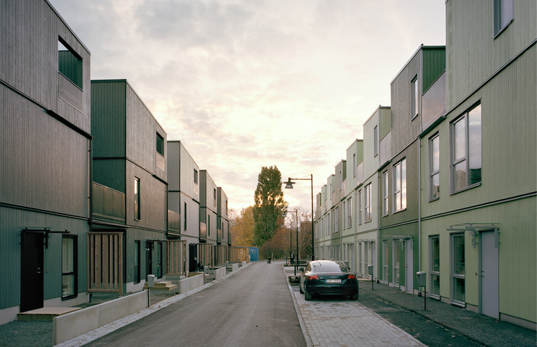 Fittja Terraces is an urban regeneration project, in the southern suburbs of Stockholm. Central Fittja was planned and built in the early 1970´s, and is a socially problematic area with a high degree of social housing. The client joined the municipality’s aim to vitalise and develop the area, with a deliberate focus on mixing different sizes of households, forms of tenure and complementing the area's homogeneous nature. The overall aim was to create opportunities for a housing career locally, in order to achieve long-term socio-economic possibilities and vibrant supportive public space. The project proved very popular: all units sold quickly and 80% of the buyers were local residents.