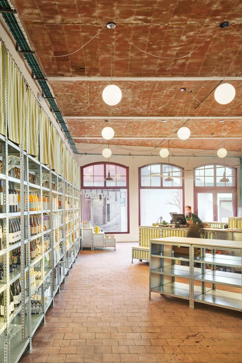 La cooperativa L’Artiga ocupa una antigua nave industrial, con la colaboración activa de las socias. La operación incluye instalaciones mínimas, mejora de la relación con la calle y un sistema de mobiliario económico basado en perfil de ángulo ranurado y tela. Una sala-graderío para actos sociales comunicará, en un futuro, con el Passeig de la Muralla, convirtiendo el local en un pasaje.