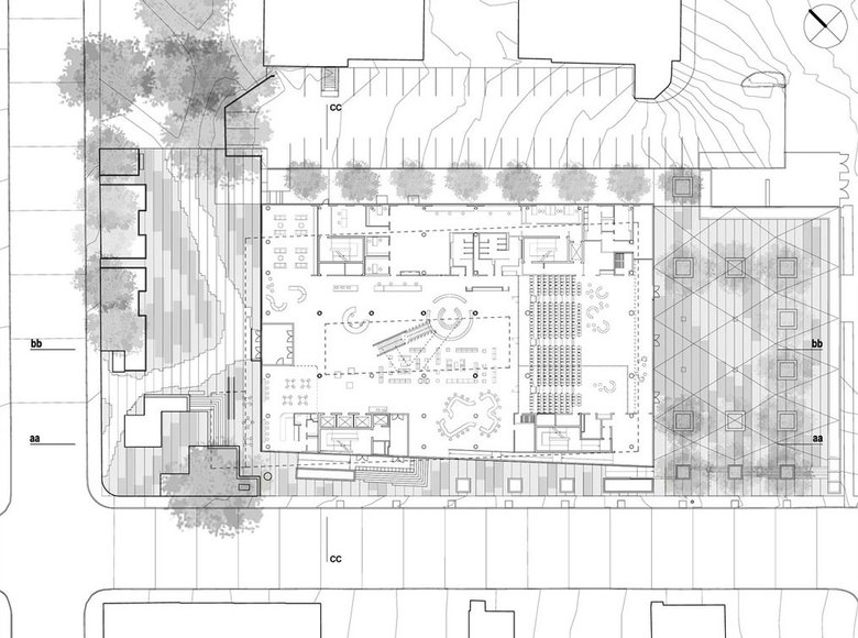 The project is aiming ambitiously towards a LEED Gold certification. The façade of the building is intended to reflect the local history of the site which was once a central local 'garden' and significant green space within the heart of the city. An abstracted 'leaf' motif of varying densities creates a façade that appears more solid in some areas, yet fully open in others reflecting the strong seasonal nature of the much loved trees that surround the site. The approach is to combine this local reference with that of a Scandinavian design signature and to create a modern hybrid library building that will stand out from other public buildings.