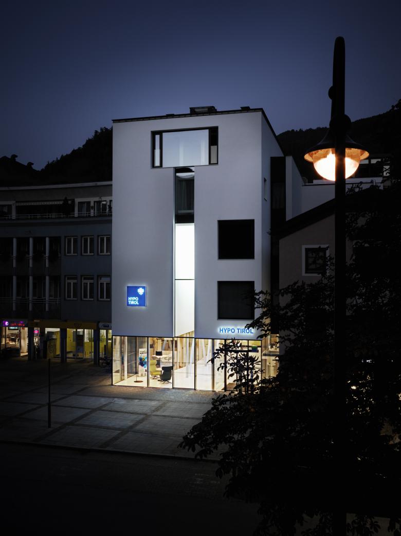 Der Entwurf der neuen HYPO Tirol Bank Geschäftsstelle überführt das postmoderne Gebäude in ein zeitgenössisches Erscheinungsbild und transportiert die wesentlichen unternehmensphilosophischen Grundsätze der HYPO Tirol Bank wie Transparenz, Klarheit und Offenheit. Die offene Raumgestaltung der prototypischen Geschäftsstelle orientiert sich am Konzept dynamischer Arbeitswelten und einem von uns mitentwickelten kundenorientierten Leitsystem.