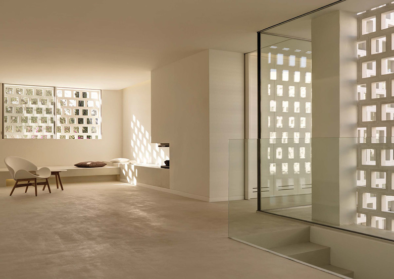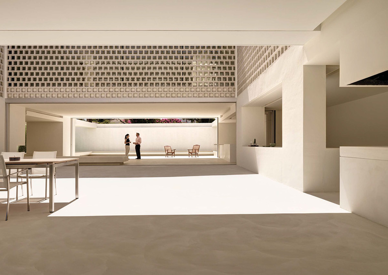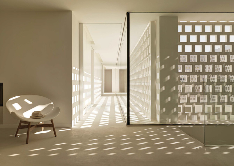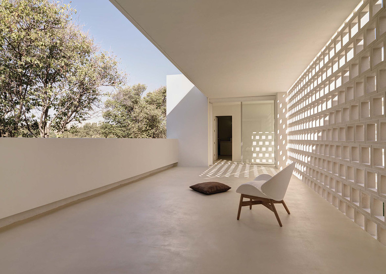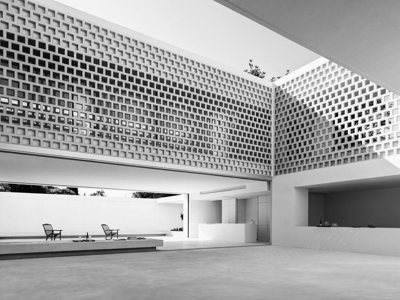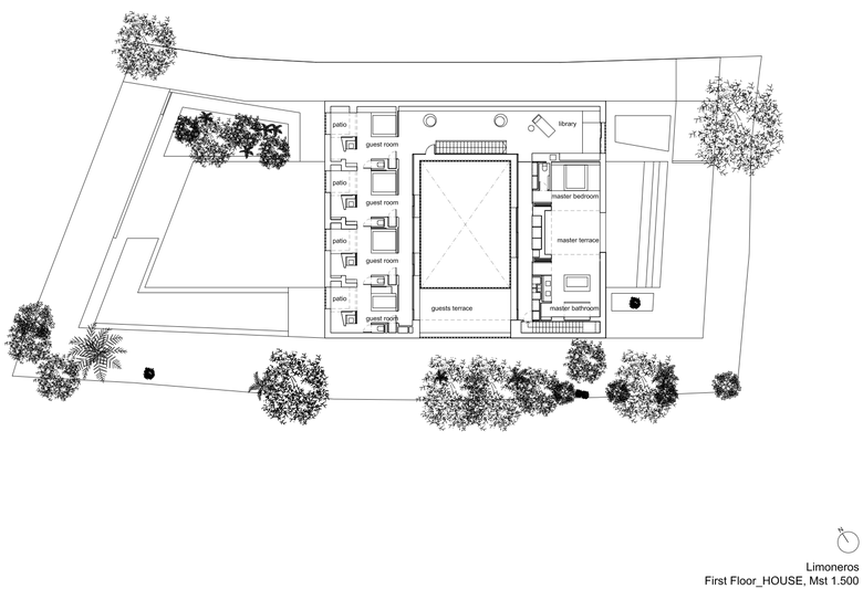The house is above the garden – The bedrooms, family lounge and yoga terrace are on the first floor. A patio with a perforated stone facade filters the light into the wardrobes and circulations of the private areas. Each room has a bathroom and a private patio attached. The master bedroom, bathroom and patio can be joined to one open space, enjoying sleeping and bathing outside, without being seen.