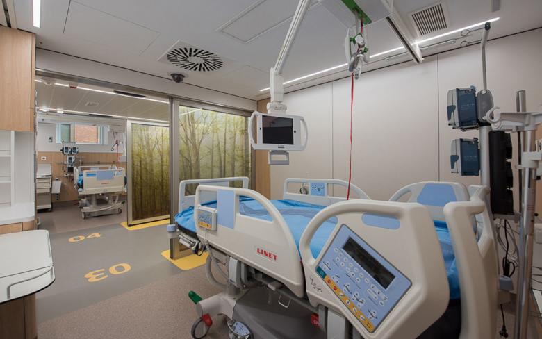 The box is the patient's habitat for a long period of time, for this reason an intimate, comfortable, collected space has been made, with the possibility of customizing it by means of magnetic walls that allow to hang pictures or other elements of the patient. The glazed walls have been removed between the boxes, and the wall of the hallway has some vinyls that reduce the pecking effect on the patient. They have also removed all the sound alarms on the inside, and the lighting has been carefully studied so that it is adequate during the day and at night.