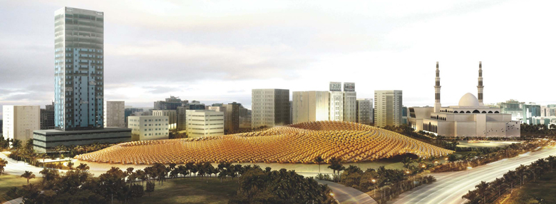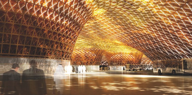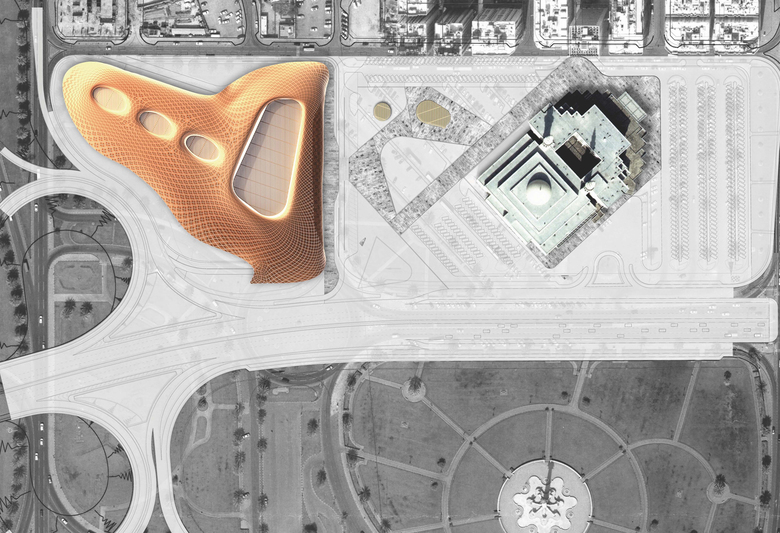 The location of the mosque calls for a building that respects the meaning of the context. A roof with soft waves, like dunes extending into the desert, built with forms and materials reminiscent of the traditional silversmith’s craft or old latticework, gives the space a rich contrast of light and shadow. This huge roof will house the waiting area, containing within its geometry a building for passengers’ use that leads to the basement level. The bus station, passenger services and ticket offices are at street level, whereas intercity and international networks are based on the lower level.
