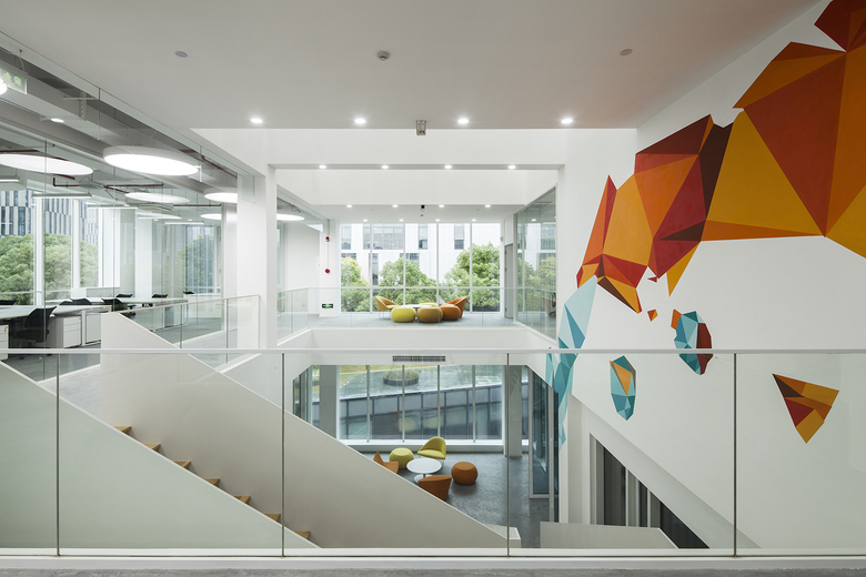 Schmidt Hammer Lassen architects has completed an overhual of an existing office building in Shanghai into an innovation incubator for Hi-Tech start-up companies. Located at the CaoHeJing Hi-Tech Park, in aim to support and nurture local start-up companies, the incubator is a pilot project of a series of shared office developments in the area by the client.