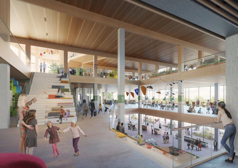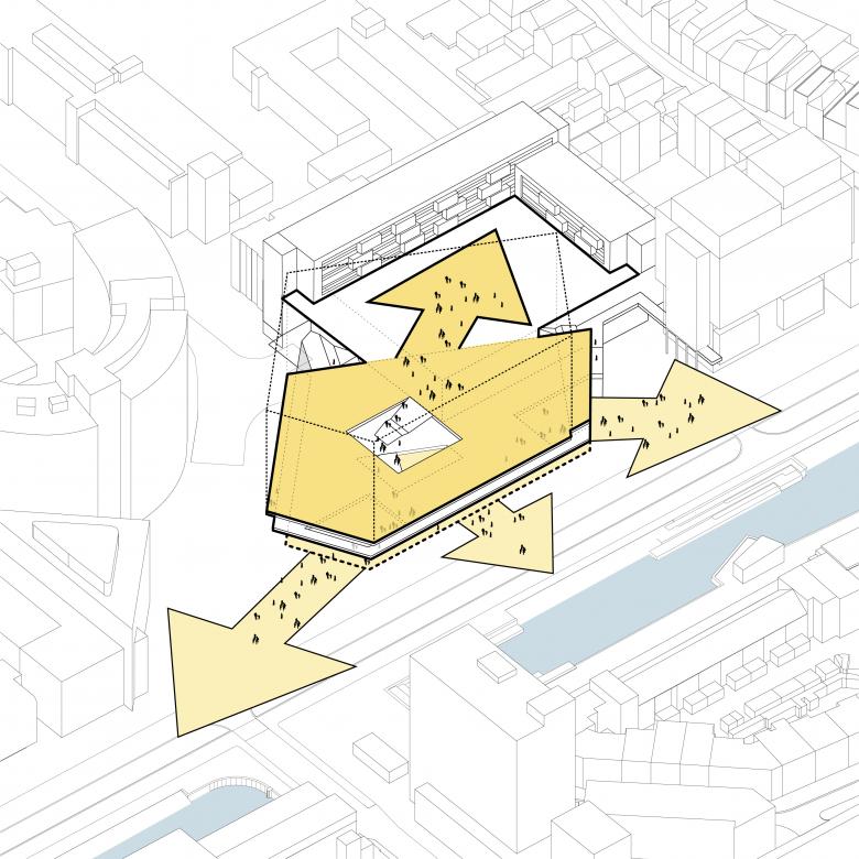 Designed as "the house of the citizens," the building will combine spatial diversity with physical and visual connectivity to facilitate a welcoming atmosphere for citizens, visitors, and staff. This layout creates several new public spaces around the facility to enhance the pedestrian experience, including a public square that connects with the city centre and an inviting pocket park. The building's central location near the waterfront and between the historic city centre and the train station situates the new House of City & Region as a hub for diversity, inclusion, and learning.