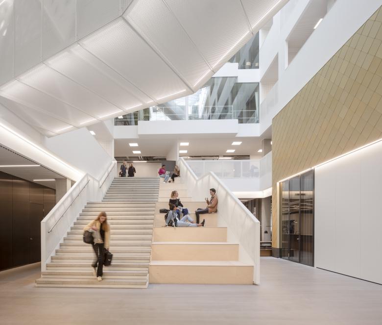 The HU University of Applied Sciences, founded through a merger of independent Utrecht institutions, was previously dispersed throughout 30 buildings. The university decided to consolidate the faculties into five adjacent buildings, with Schmidt Hammer Lassen’s structure the last to be completed in 2018. The 22,310 square-metre Heidelbergglaan 15 building is home to eight educational institutes and enables the students to mix and collaborate.