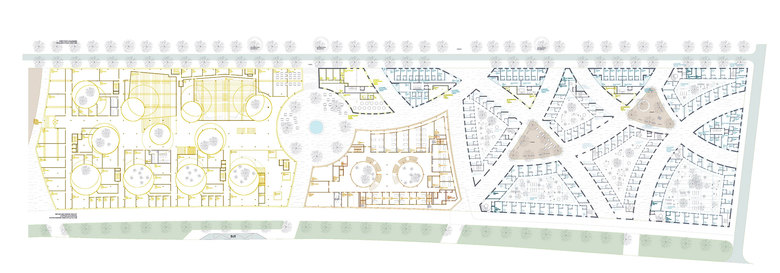 QUADRANT 1: DIE HOCHSCHULEN DES ‹CAMPUS SANTÉ› ALS URBANER ORGANISMUS. Eine Abfolge von Lichthöfen schaffen ein internes räumliches Netzwerk.