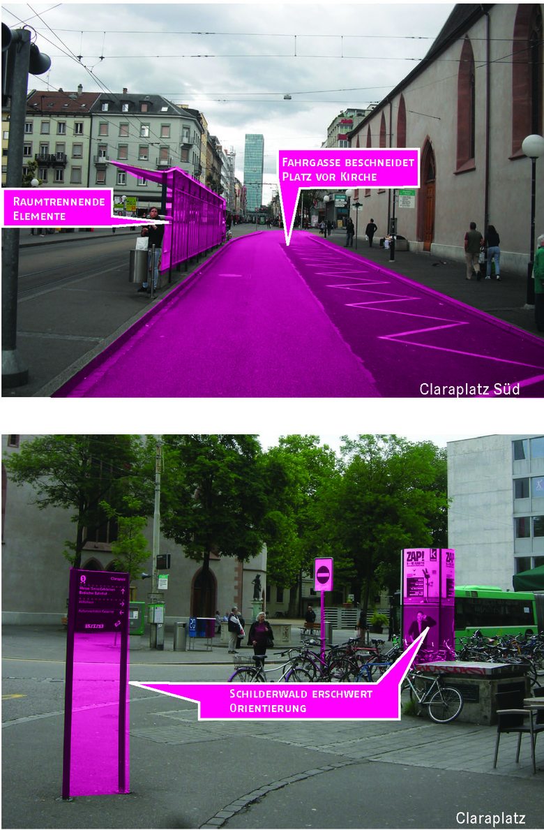 Die Innenstadt Basel ist einem stetigen Transformationsprozess unterworfen. Projekte für eine bedürfnisgerechte Gestaltung des öffentlichen Raumes scheiterten bisher häufig an den widersprüchlichen Interessen der Beteiligten.