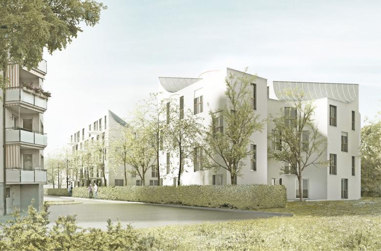 Die städtebauliche Setzung der Gebäude nimmt Bezug auf die überwiegende Durchgrünung von Altstetten. Das bestehende langgstreckte Laubenganghaus wir durch zwei Baukörper ersetzt, die in ihrer Mitte einen gemeinsamen Freiraum umfassen. Über diesen erfolgt die Ankunft zu den Hauseingängen, gleichzeitig dient er auch als Aufenthalt für die Bewohner.