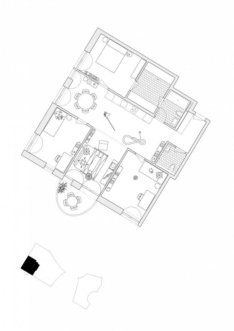 Das Réduit wird jeweils zwischen Bad und Schlafzimmer geschaltet: Damit dient es auch als Ankleide. Gleichzeitig ist es aber auch für alle Mitglieder der Familie oder Wohngemeinschaft über das Badezimmer erreichbar.