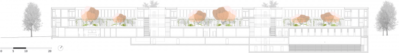 Es ist nur begrenzt möglich, zu wissen, wie in Zukunft in unseren heute gebauten Schulen gelernt wird. Zumindest ein Teil der Antwort auf diese Unwägbarkeit liegt in einer maximal flexiblen Struktur. Die Reduktion auf wenige tragende Elemente erlaubt es, die Räume den Bedürfnissen entsprechend flexibel anzupassen. Damit steht auch in fernerer Zukunft die Möglichkeit offen, innerhalb der vorgesehenen Struktur völlig neue Raumeinteilungen vorzunehmen oder andere Nutzungen einzurichten.