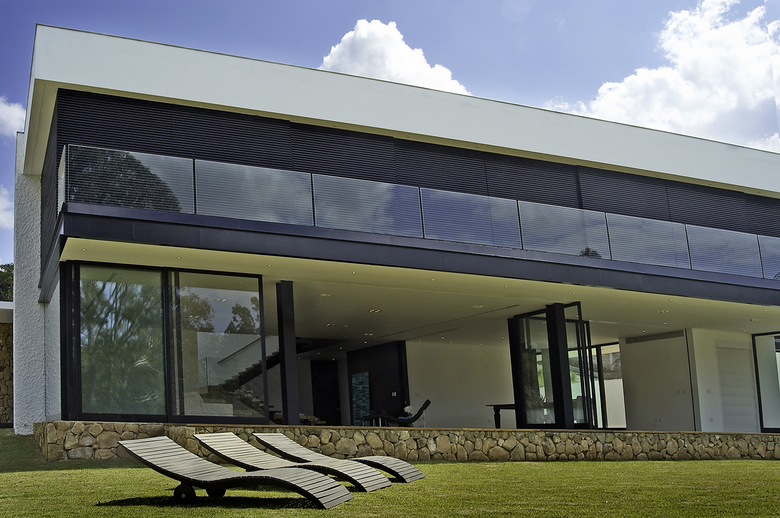 The architecture project has been developed to integrate the whole house to the beautiful lake and the landscape of the condominium, creating distinct blocks, according to their functions as entrance, living areas, bedrooms and services, acomodated in 2 diferent levels, intercomunicated by two stairs, for service and social purposes.