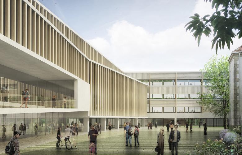 Esta disposición de un nuevo conjunto edificado como génesis de un recinto urbano-arquitectónico será la envolvente del antiguo hospital Gil Casares. Se crea así el denominado patio-campus como lugar de encuentro y de circulaciones que acompañan y realzan la edificación antigua, futuro museo. El nuevo volumen se adapta a su entorno y a los edificios colindantes de manera no contrastada.