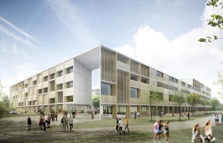 Se proyecta para complejo dotacional de edificios de ciencias de la salud un edificio lineal de planta baja y tres plantas piso que se implantan perimetralmente en el solar con la intención de generar un recinto controlado interior. Un gran edificio lineal da fachada a la avenida del CHUS protegiendo el nuevo patio-campus y generando la futura avenida-paseo.
