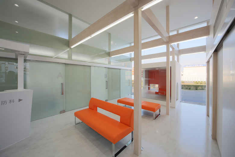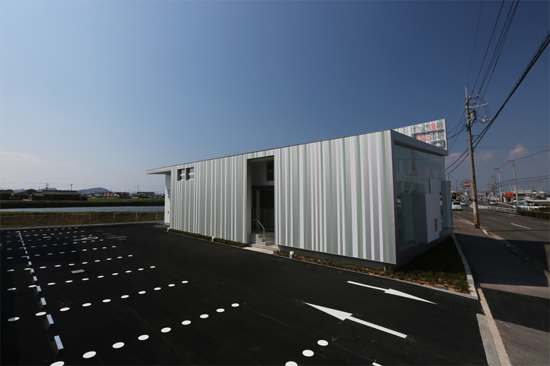 There is also contrivance in the outer wall like a roll cake. The wall of garvanised stealseats composed in 4 colors – silver gray, sand silver, white and lime. Lime stands out in sunny day, silver gray stood out in day of cloudy and rain and all colors becomes orange in sunset…! Outside walls separately lined on 4 colors and it produces unique expression.
