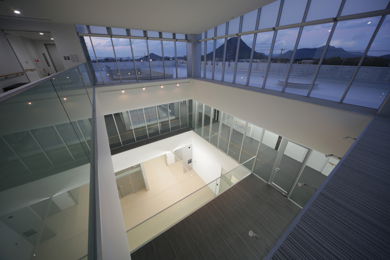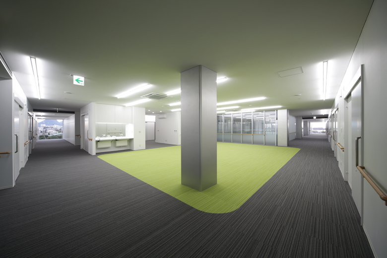 This architecture which contains 4 programs of medical, nursing care and welfare fields composes “town” inside by atrium hole arranged on center of the building with connecting outside gently.
