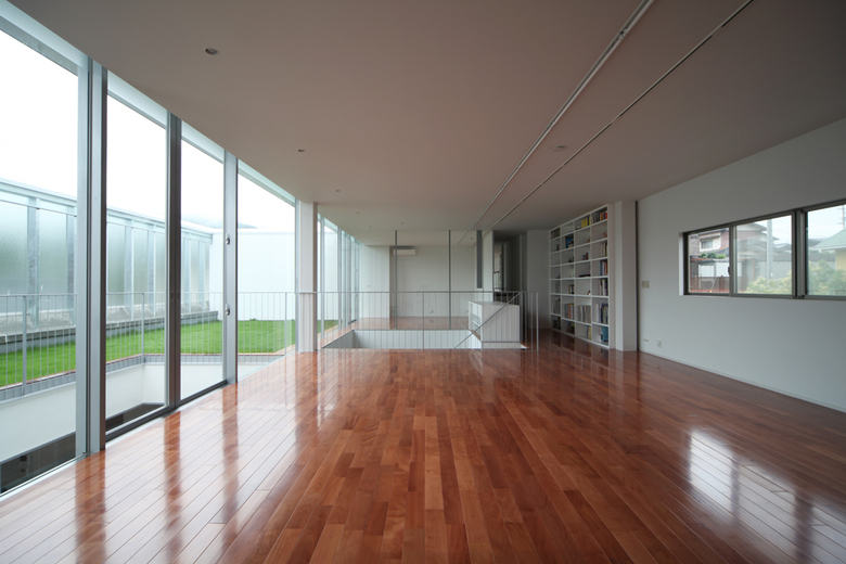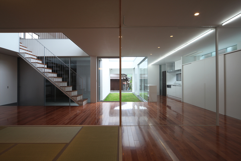 This house is built in the corner of decrepit new town (developed in the 70’s). The generation change begins in the town, the neighborring houses are rebuilding. This house is also unexceptional. The old couple cohabits with young couple. The cohabitation can be unique style in this town.