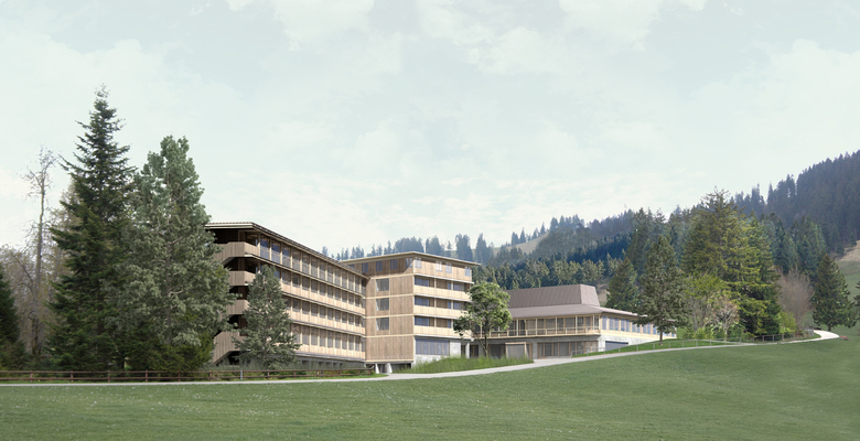 Das bestehende Wohngebäude wird in seiner Struktur weitgehend belassen, aber neu gedacht. So wird die Horizontalerschliessung von der Nordfassade an die Südfassade des Gebäudes verlegt. Dort werden die bestehenden Balkone durch eine grosse, verglaste Laube ersetzt, die neu nun die Studentenzimmer erschliesst. Diese Zimmer werden um die hintere Korridortiefe verlängert, dabei vergrössert und erhalten so auch ein Fenster gegen Norden mit Blickbeziehungen zum rückwärtigen Wald und ins Tal. Die bestehende Zimmerstruktur, die sanitären Erschliessungsschächte und auch die Fassaden bleiben dabei erhalten. Die vorgelagerten Lauben _ selbst werden zu Begegnungsräumen in einer vom Wetter geschützten klimatischen Zwischenzone. Die Studentenzimmer sind neu nun zweiseitig orientiert und mit einer zentralen Nasszelle gegliedert in eine eher soziale Seite zu de Lauben hin und eine intime „Schlafkoje“ gegen den ruhigen Wald.