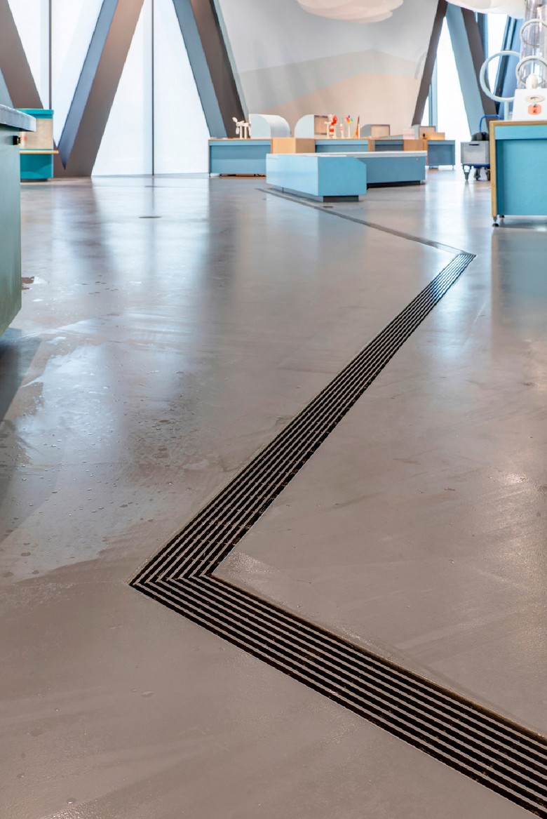 → Stainless steel linear grids type KSM-V | widht 300 mm, total length 360 meters straight grids + 25 meters curved grids in the entrance area