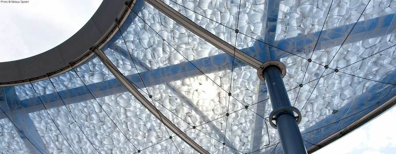 Das weltgrösste luftgestützte Folienkissen prägt den neu gestalteten Bahnhofplatz in Aarau.