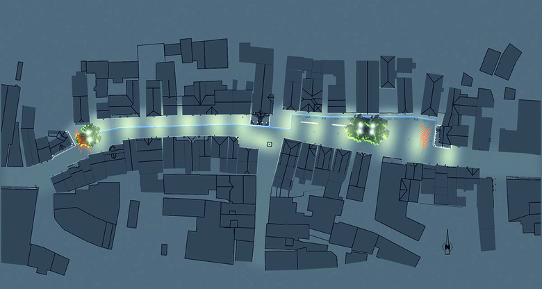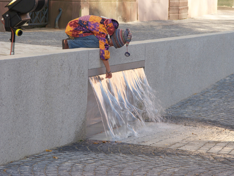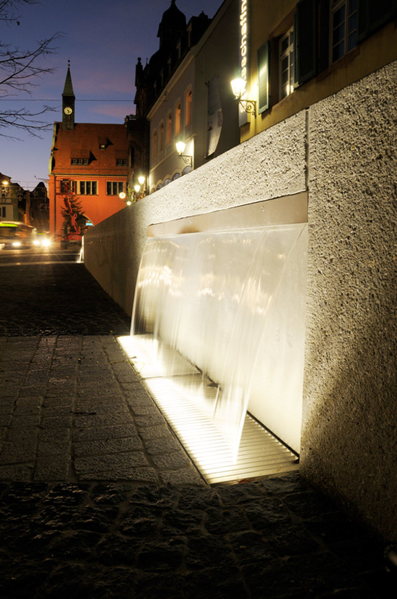 Wenn das Meer sich zurückzieht, hinterlässt es Spuren im Sand. An dieses Muster erinnert die Gestaltung des Urteilplatzes in Lahr. Edler Naturstein wurde verlegt, Bäume gepflanzt und leuchtende Brunnenelemente integriert. Der fertig gestellte Platz gleicht einem Ballsaal. Er verbindet die mittelalterlichen und modernen Bauten im Stadtkern zu einem traditionellen, festlichen und geräumigen Zentrum.
