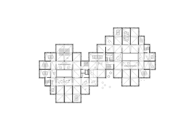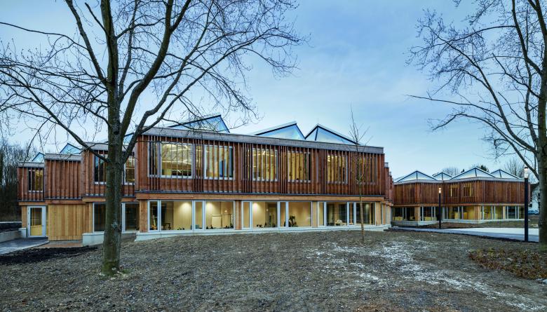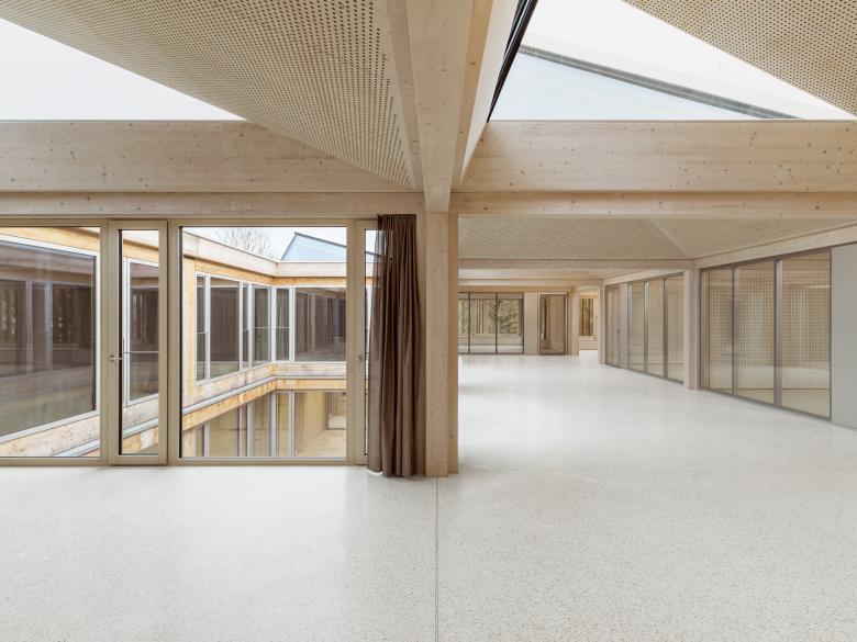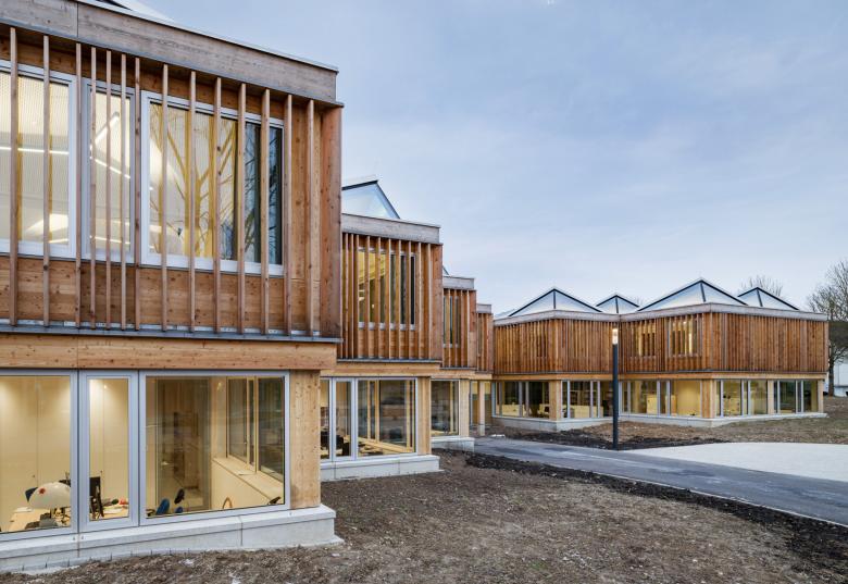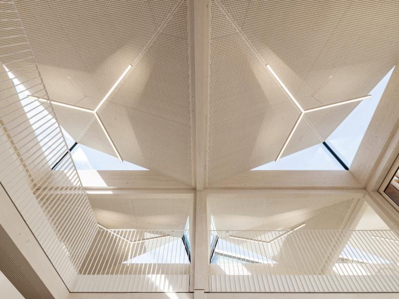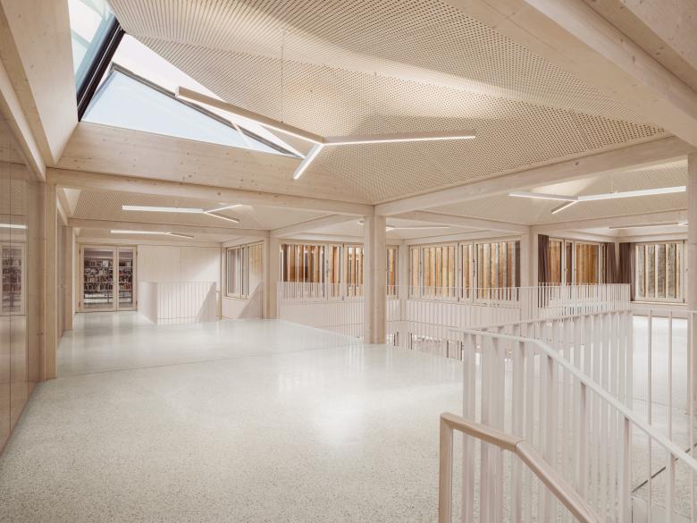 Die netzartige Gebäudestruktur wird in ein Holzskelett mit klarem, durchgehendem Stützenraster und wirtschaftlichen Spannweiten übertragen und ermöglicht eine hohe Variabilität und Flexibilität. Es entsteht eine vielfach gegliederte multimodale und kommunikationsorientierte Lernlandschaft, welche zum vielfältigen und differenzierten, selbstorganisierten, Lernen und Arbeiten einlädt.