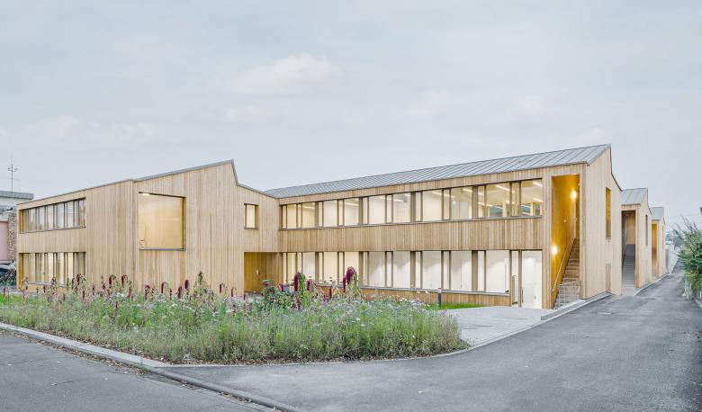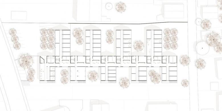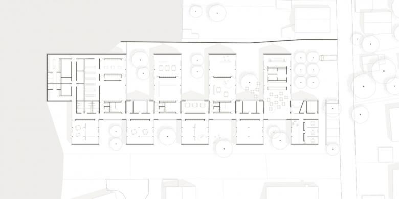 Der neue Typus einer Werkstatt für behinderte Menschen ist gekennzeichnet durch die Verknüpfung der Bereiche Arbeiten und Rekreation. Durch das geplante Doppelkammsystem mit versetzt angeordneten „Häusern“ entsteht ein lockeres mit den Außenräumen verflochtenes Netzwerk, so dass sich Arbeiten und Erholen ergänzen. Beim Neubau der Werkstatt und des Medizinischen Versorgungszentrums wird die Gefällesituation genutzt, um die Einrichtungen barrierefrei an die angrenzenden Straßen anzubinden. Im Inneren können sich alle Nutzer gleichberechtigt, unabhängig von ihrer Mobilität, ohne Aufzüge und Treppen bewegen.