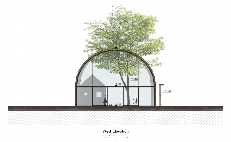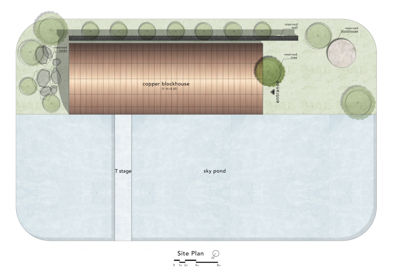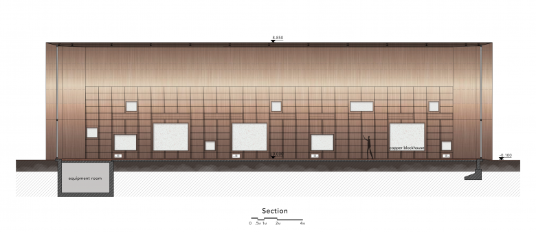 The name "Copper Blockhouse" is inspired by an air raid shelter reserved on the project site, a solid fortress.