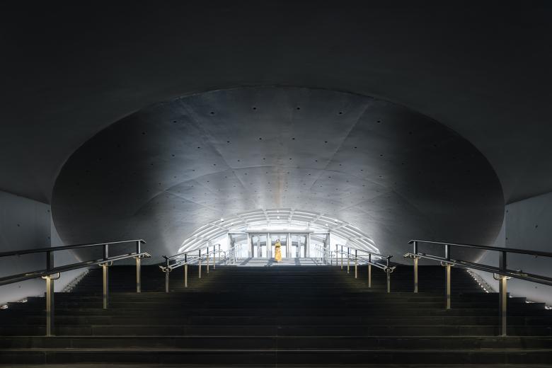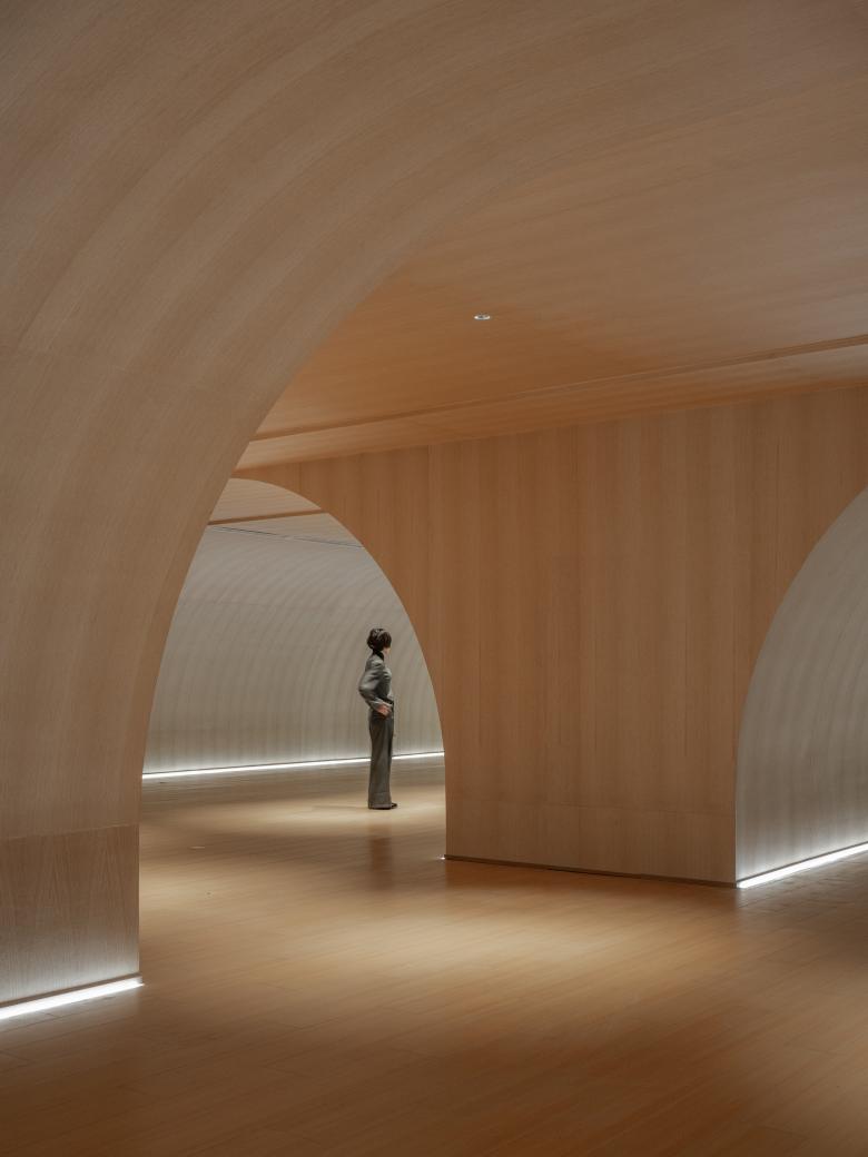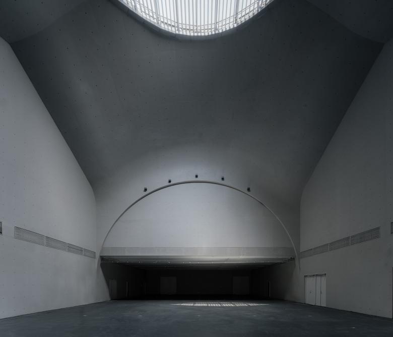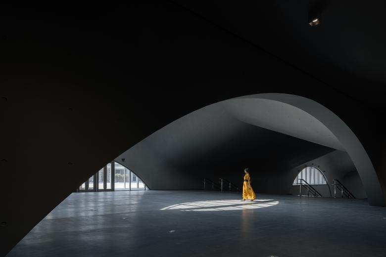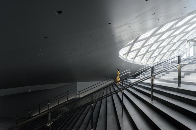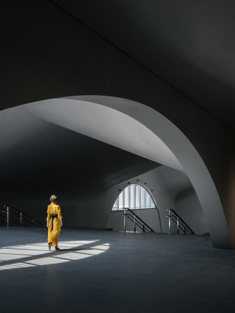 Prior to the inaugural ceremony, I traversed through the exhibition hall, making my way to the profound depths of the museum, where I concealed myself within the obscurity, witnessing the descent of the morning sunlight through the eyes' skylight. After a while, I discerned an almost imperceptible breath, as if the curved dome had metamorphosed into colossal wings, gently undulating. The art museum awakened, as if poised to emerge triumphantly from the earth's embrace. There exist moments in one's existence, unassuming days suddenly imbued with the presence of formidable forces, where the very ground trembles - a felicitous occurrence indeed.