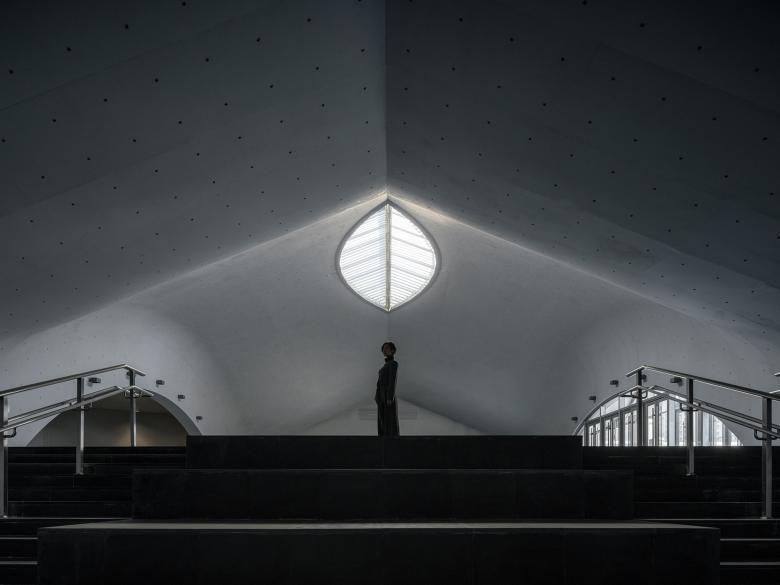 Undoubtedly, the essence of the art museum is shaped by the presence of natural light. While underground structures typically serve as refuges, the interplay of natural light uncovers the profound "depth" concealed behind the grandeur of the museum, imbuing it with a sense of spirituality and sanctity. As you stand amidst these interconnected spaces, guided by the interplay of skylights, you may perceive a fleeting illusion of eternity or, perhaps, the essence of time itself. The profound "depth" disorients you within the relentless current of time, which we all traverse from the moment of birth. The shadows cast by natural light undergo a gradual and prolonged metamorphosis upon the ground. Initially, you may experience a hint of restlessness, then a growing compulsion. Ultimately, you come to appreciate the captivating beauty of the light—strange yet familiar, intangible yet enveloped within its ethereal projection. It calls to mind a verse: "Que há noite antes e após. O pouco que duramos." ("There is night before and after. The brief time that we live.") In this moment, you may encounter both anguish and solitude, while also marveling at the wondrous nature of life. It evokes within you a gentle recitation of verses or even an impromptu dance of awe.