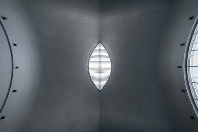 I associate the word "introspection" with eyes. Consequently, I made the decision to integrate skylights resembling eyes into thin-shell swept surface domes that gracefully emerge from the ground, guiding the natural light into the underground space. Eyes bear a conspicuous symbolic significance and amplify the role of natural light in shaping the viewers' encounters and interpretations. They serve as a means of guiding viewers towards a contemplation of temporal perspectives within the ephemeral span of their lives.