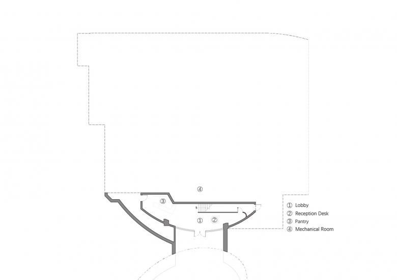 The utility rooms of The Rock span nearly 900 square meters—over half the total area. To preserve the visual proportion between building and cliff, the service space was buried into the mountain, treated as part of the landscape, keeping the main "stone" structure visually light. However, given that the site lies in Tangshan's Grade-8 seismic zone, even a small cantilever was extremely difficult. We used parts of the curtain wall framework as structural reinforcement to ensure the final form could be realized.