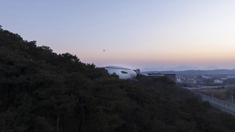 From this vantage point, we explored various architectural forms, but none felt right. In the end, we chose to “de-architecturalize.” The northern edge of the site drops off like a cliff, offering the best view of the ancient Great Wall. I drew inspiration from the traditional Chinese landscape concept of the “flying rock”—there are over 30 scenic sites across China named flying rock. The term “flying” suggests both a break from the surroundings and a transcendent, otherworldly nature—memorable and distinct. Thus, we shaped the center into a "flying rock," extending outward from the cliff with a faint posture of flight.