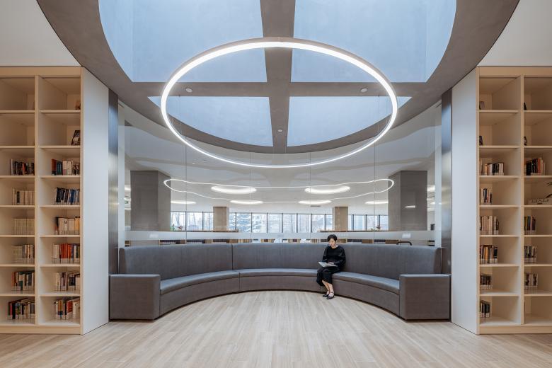 We create a "Chinese nested box" structure in the Zikawei Library, which is derived from the traditional Chinese trousseau box in the Han Dynasty. The first layer of the box is the thin façade designed by DCA; the second layer consists of the main programs of the library such as coffee, various reading areas, lecture halls, exhibition halls, etc; the third layer is the donut-shaped aisle; the fourth layer is the atrium that serves as the library's reading hall; and lastly, the heart of the library, the last protected treasure of the box structure.