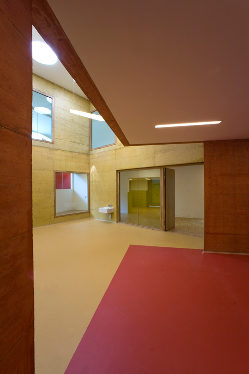 A ceux-ci s’ajoutent des locaux communs, tels que salle de peinture, de cuisine, de théâtre, de motricité et multimédia. Ces éléments s’organisent autour d’un espace central ponctué par trois tours qui contiennent les locaux communs. Elles se développent sur double hauteur et créent ainsi des liens visuels entre les différents groupes qui occupent la nouvelle crèche. C’est le lieu de rencontre, d’échanges, le point de référence du projet.
