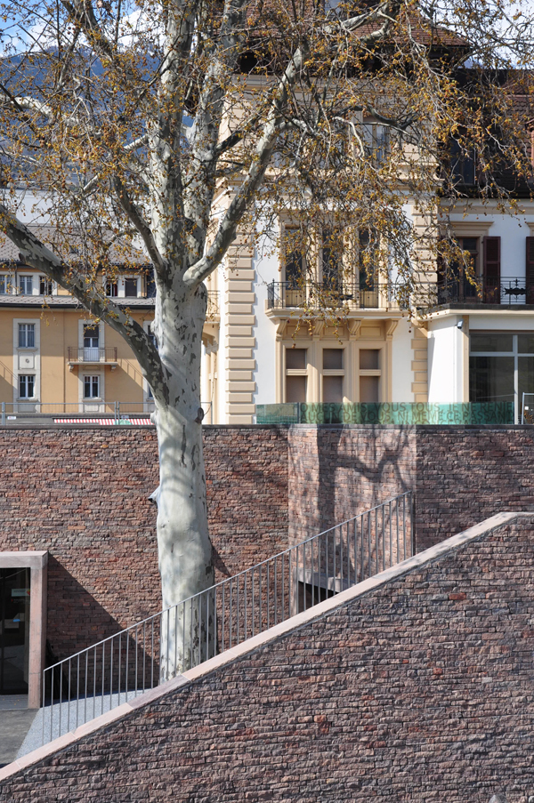 Le nouvel hôtel de police de Sierre est implanté dans le socle ouest et nord de l'Hôtel de Ville.