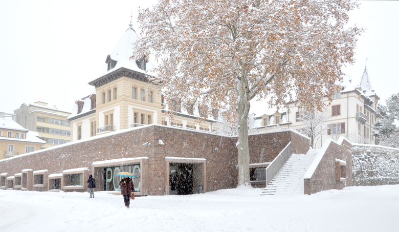 Le projet profite de la différence de niveau existante entre la place de la gare et les jardins de l'Hôtel de Ville. Il s'organise sur un seul niveau en contiguïté avec le sous-sol existant. Il bénéficie d'un rapport privilégié avec la place de la Gare depuis laquelle on accède au bâtiment.