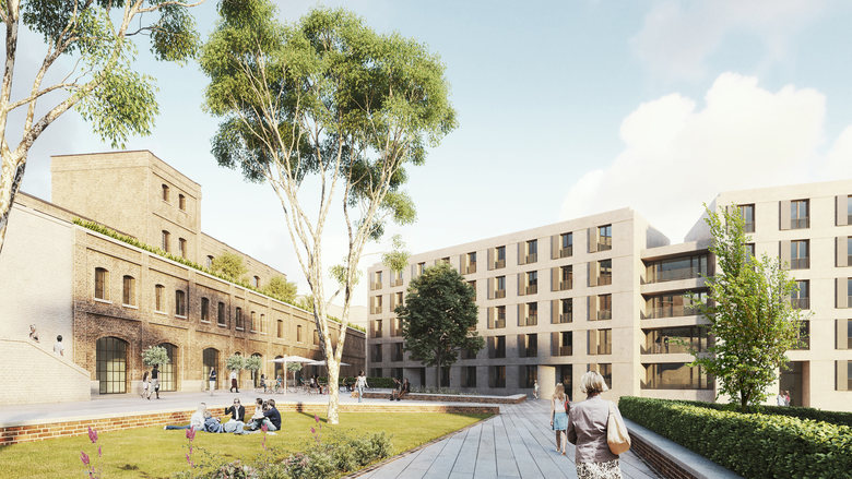 Die Wohnbauten werden in mit dem jeweiligen Umfeld korrespondierenden Typologien und mit entsprechenden Wohnformen ergänzt, um so die heterogene Struktur des Quartiers weiterzuentwickeln. Insgesamt entsteht ein Mix aus 191 Wohneinheiten aus gefördertem Mietwohnungsbau, freivermieteten Wohnungen, Mikroappartements, Eigentumswohnungen unterschiedlicher Größe und Lofts als ergänzende Sonderlösung.