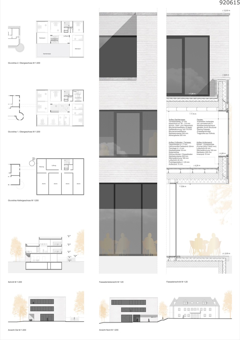 Der in einem nicht offenen Realisierungswettberb 2015 mit dem 2. Preis ausgezeichnete Entwurf liegt neben dem Bestandsgebäude der MHI AG aus den 1990er Jahren in Hanau Steinheim. Die Grundidee basiert auf einem einfachen subtraktiv bearbeiteten Quader. Der massive, scharfkantige Baukörper mit den fassadenbündigen glatten Fensterelementen, steht der bestehenden konservativen Architektur des Bestandsgebäudes spannungsvoll gegenüber. So definiert sich vor dem Eingangsbereich eine einladende Platzsituation, eine Art kleiner Campus, der dem gesamten Areal einen neuen Mittelpunkt bietet und einen möglichen 2. Bauabschnitt zusammenfasst und verbindet. Die Bürobereiche sind in zwei Ebenen aufgeteilt, die zusätzlich durch einen Luftraum verbunden sind, der viel Offenheit und Raum zur Kommunikation bietet. Seminarraum, ein Casino mit dazugehöriger Terrasse sowie die notwendigen Nebenräume befinden sich im Erdgeschoss Der hellgraue fast weiße Klinker der Fassade harmoniert mit der Putzfassade des Bestands und bietet einen nachhaltigen und wertigen Kontrast. Die Gestaltung des Neubaus ist insgesamt zurückhaltend, seine Gebäudehöhe orientiert sich am Bestand.
