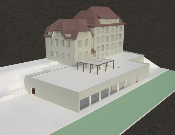 Der Eingriff klärt die heutige Situation und betont die Qualitäten des Ortes. Durch die halbversenkte Turnhalle werden die bereits bestehenden Aussenräume gestärkt und in ihrer Funktion klarer ausformuliert. Die Freistellung des denkmalgeschützten Schulhauses steigert dessen räumliche Präsenz.