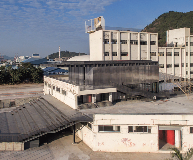 In the north of the site stand the silos which, with the highly sculptural volume and impressive height, boast the most distinctive feature of DaChan Flour Mill, while to the south of the site there unfolds the fantastic sea view of the busy Taiziwan Bay. So how to invite both views into the renovation and make them part of the attributes of site becomes the starting point in design of the lecture hall. As response, visual corridors and some height points are provided in the north and south of the site to avoid the sense of enclosure caused by the box-like industrial building. The north and south facades are defined as two gigantic frame finders to bring in the most attractive views, meanwhile, create an open and transparent performance space against the urban backdrop. With addition to and renovation of the lecture hall, 1F is displaced with the Maker Maker exhibition, 2F the bathrooms and meeting rooms under the steps, 3F with the leisure bar. Besides, the spaces of the grinder building are borrowed to serve as VIP lounge. With interplay and organic combination of the functionality and space, a mini-conference complex is created.