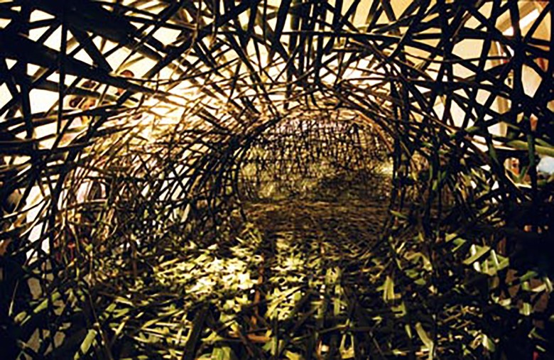 Quan es talla, el bambú és capaç de fer una corba flexible. I pot ser un material de construcció forta quan es teixeix.
