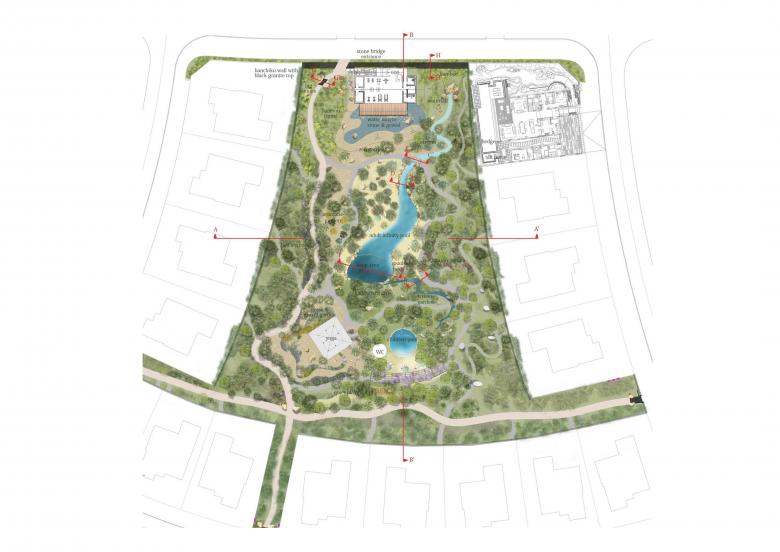 We generated a route associated with this watercourse with a series of gardens, waterfalls, pools and meditation and relationship spaces to combine the benefits of the gardens associated with the physical and psychological well-being of the residents.