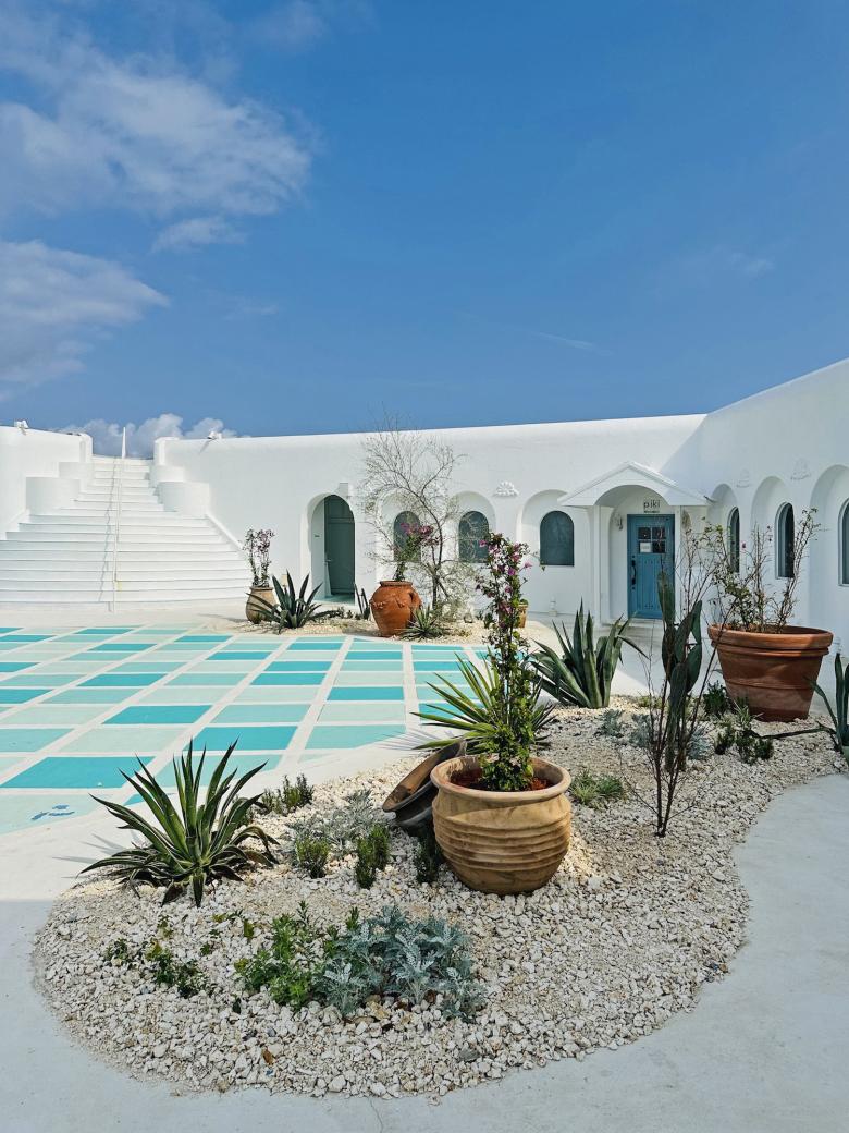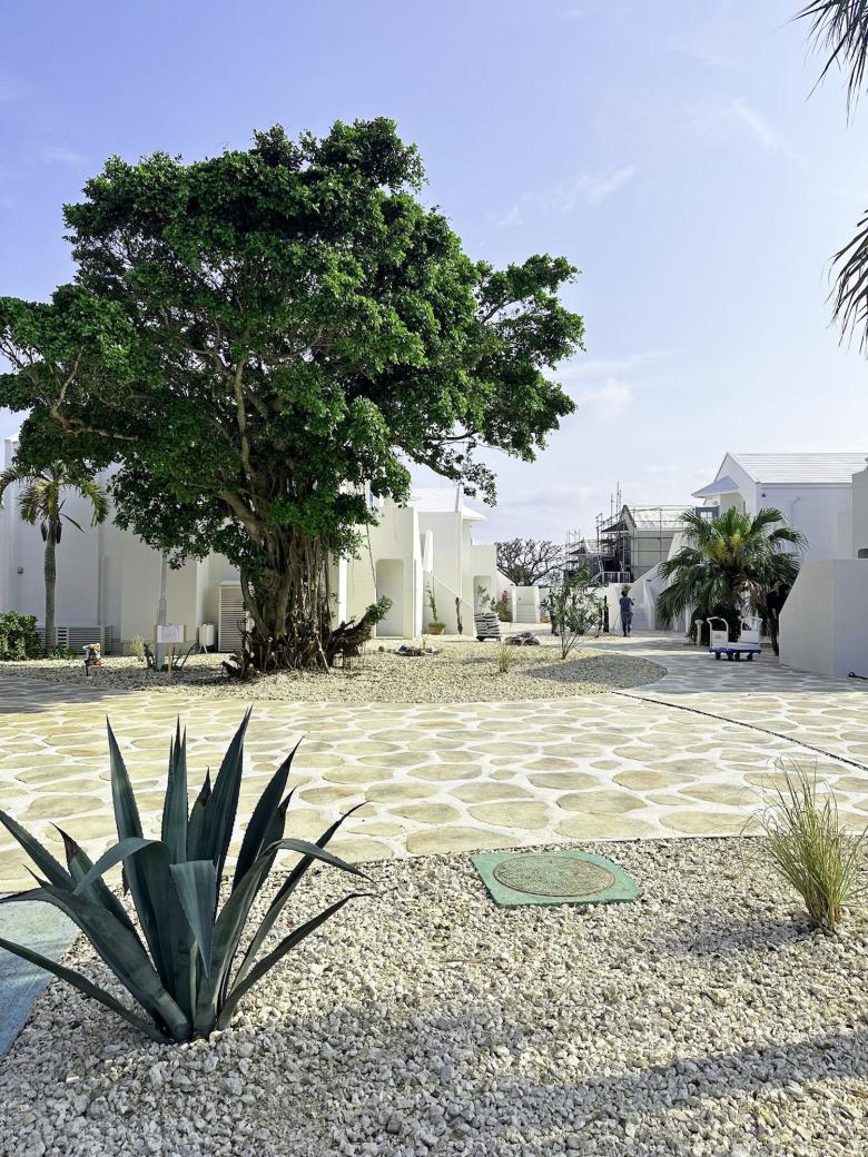 ミコノス島をテーマにランドスケープのリノベーショ ン。 エーゲ海の風を感じるオープンエアのスペースや 地中海風の石畳など、細部にわたりミコノス島の エッセンスを反映させた。ミコノス島にいるかのよ うな特別な体験を提供し、ホテルの魅力を大幅に 向上させることができました。