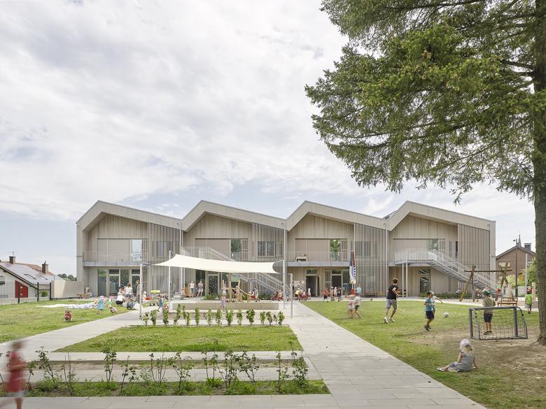 Ansicht West: Kindergarten mit Außenanlagen