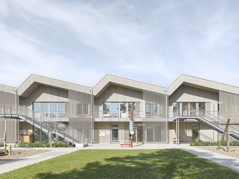 Ansicht Ost: Fassade-Eingang Kindertagesstätte