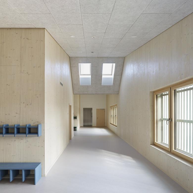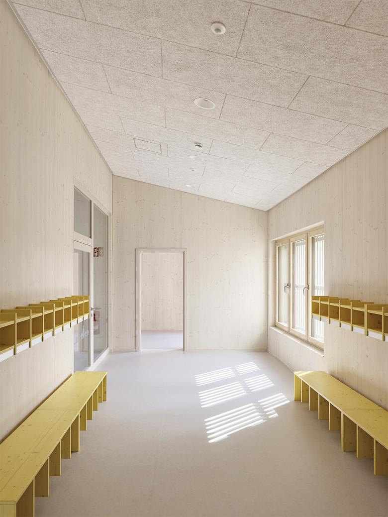 Kindertagesstätte 1 OG: Flurzone mit Umkleide