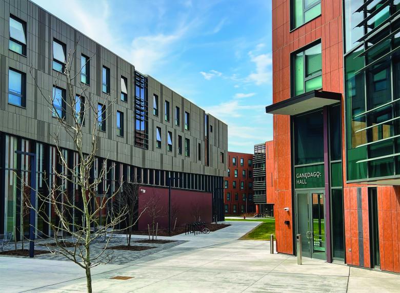 An der Cornell University ist ein 776.000 Quadratmeter großer neuer Wohnkomplex entstanden, der mit 2.000 Betten auf zwei separaten benachbarten Standorten des North Campus, Studenten im ersten und zweiten Studienjahr Unterkunft bietet. Entwickelt hatte diesen visionären Plan - der vorsah, dass Erstsemester auf dem Nordcampus wohnen - in den späten 1990er Jahren der damalige Universitäts-Präsident. Sein Ziel: Größeren Zusammenhalt und eine einladende Erfahrung für neue Studenten zu schaffen. Seine Vision: Eine einheitliche Bildungserfahrung, die in die Breite des intellektuellen Umfelds der Cornell University einzuführen und es den Studierenden zu ermöglichen, die Vielfalt des Cornell-Studienangebots zu erleben.