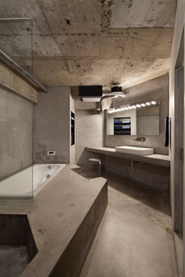 築40年のRC造のマンションのリノベーションで、「服を収納する」ということから空間を構成していった住宅。クライアントは家で服を試着したり、お気に入りの服や買ったばかりの服を飾っておくのが好きだと言われた。大きなクローゼット空間が欲しいという要望であったが、せっかくの服を完全に隠蔽してしまうのではなく、PLANの中央に大きなクローゼット空間を配置した。そこは「ドレスルーム」と呼び、通路であると同時に見せる収納と隠す収納に分かれ、そのときの状況や季節に応じて常に変化する空間とした。そうすることにより、生活の中にファッションが入り込み、この空間を通るたびに気分が変わるような場所になったのではないかと考える。インテリアは既存の躯体を生かしながらモルタルと鉄で構成し、服や家具により空間が彩られるようなグレーでまとめあげた。