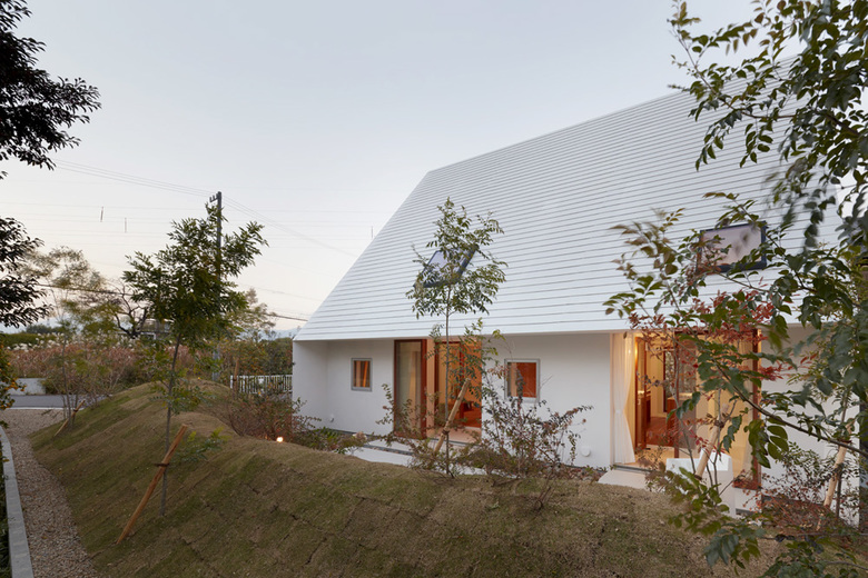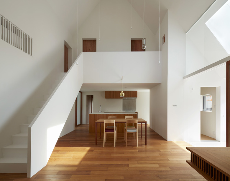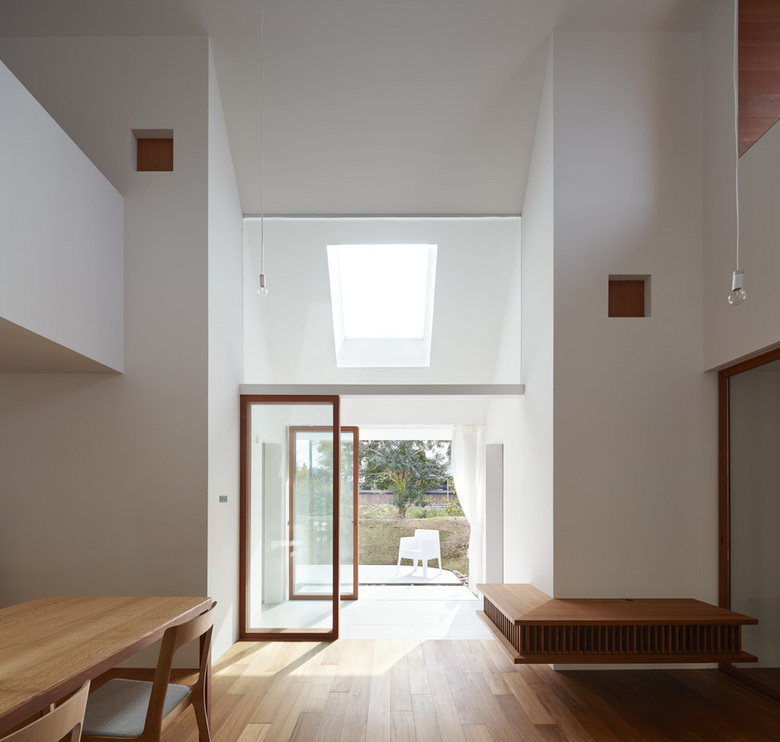 岐阜県の大垣市で計画した戸建て住宅。近隣に2本の線路が走る敷地で開放的でありながらも防音を求められた計画である。ここでは最も防音したいLDKのまわりを水廻りや収納や個室の空間を並べ、その内側にLDKが納まるような間取りとした。並べた個室との隙間の部分はインナーテラスとして機能して個室やLDKの余白的空間としてそれぞれの利用の仕方を増幅させるものとしつつガラス扉を閉めたり開けたりもでき、LDKへの採光であったり開放感をもたらすものとして機能している。そして音を遮断しながらもLDKを2段階で囲むことにとり断熱性能を向上させ、快適な温熱環境を確保するものとしている。囲むということに着目して、結果的に音の問題を解決しながらも、全ての部屋に囲まれたLDK空間は家族の気配を常に感じることができ、開放的でありながらも快適な状態を保つことができる豊かな空間となった。